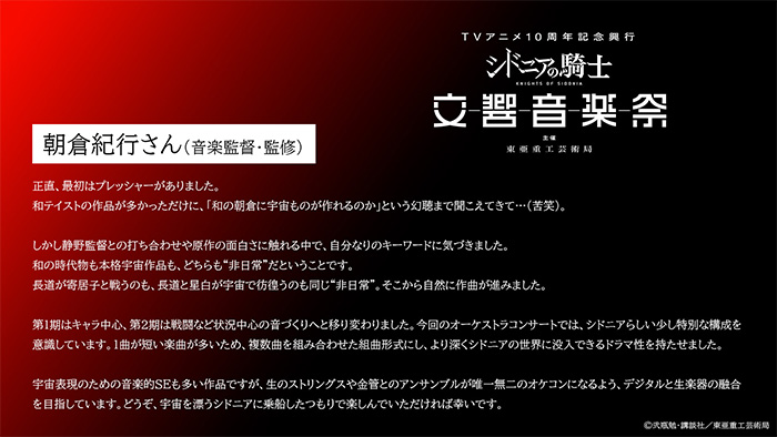 TVアニメ10周年記念興行『シドニアの騎士 交響音楽祭』:主催 東亜重工芸術局